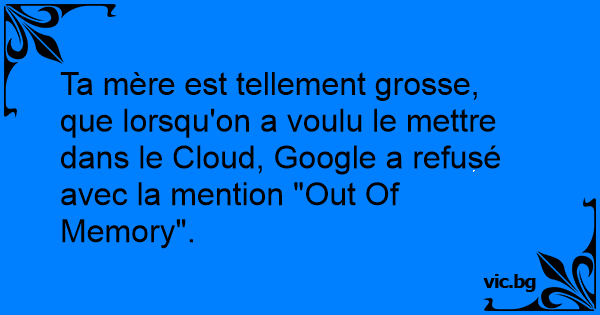Ta mère est tellement grosse, que lorsqu'on a voulu le mettre dans le Cloud, Google a refusé avec la mention "Out Of Memory".