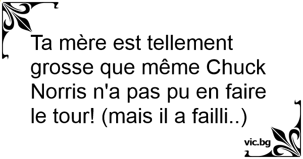 Ta mère est tellement grosse que même Chuck Norris n'a pas pu en faire le tour! (mais il a failli..)