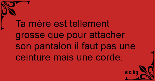 Ta mère est tellement grosse que pour attacher son pantalon il faut pas une ceinture mais une corde.