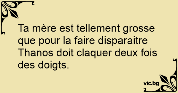 Ta mère est tellement grosse que pour la faire disparaitre Thanos doit claquer deux fois des doigts.