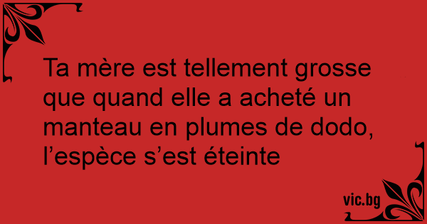 Ta mère est tellement grosse que quand elle a acheté un manteau en plumes de dodo, l’espèce s’est éteinte