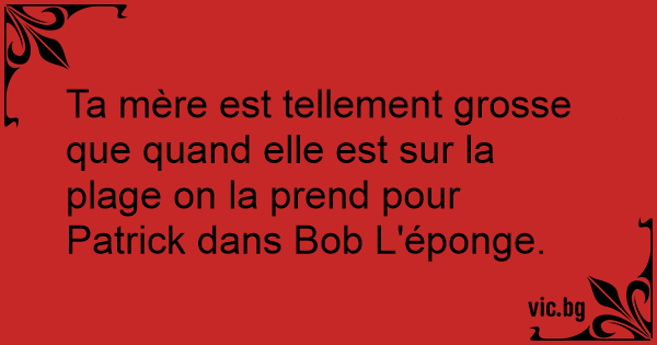 Ta mère est tellement grosse que quand elle est sur la plage on la prend pour Patrick dans Bob L'éponge.