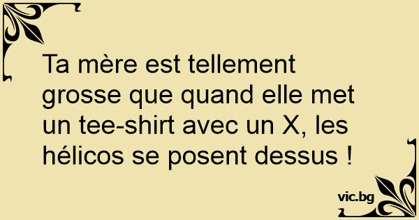 Ta mère est tellement grosse que quand elle met un tee-shirt avec un X, les hélicos se posent dessus !