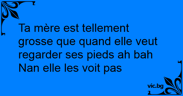 Ta mère est tellement grosse que quand elle veut regarder ses pieds ah bah Nan elle les voit pas