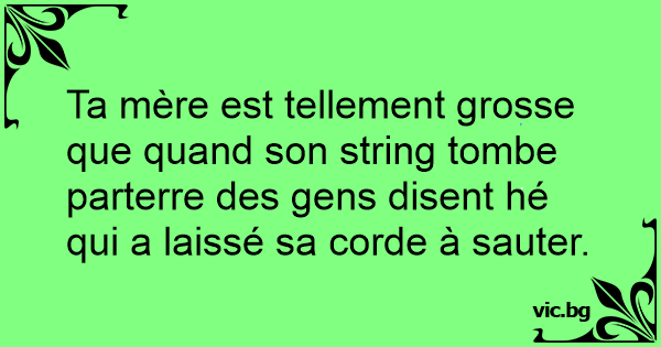 Ta mère est tellement grosse que quand son string tombe parterre des gens disent hé qui a laissé sa corde à sauter.