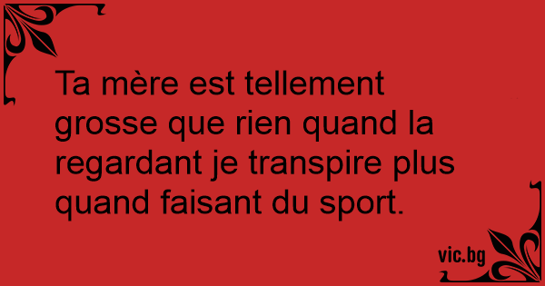 Ta mère est tellement grosse que rien quand la regardant je transpire plus quand faisant du sport.