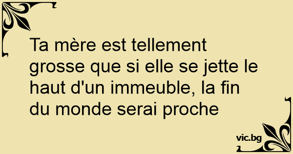 Ta mère est tellement grosse que si elle se jette le haut d'un immeuble, la fin du monde serai proche