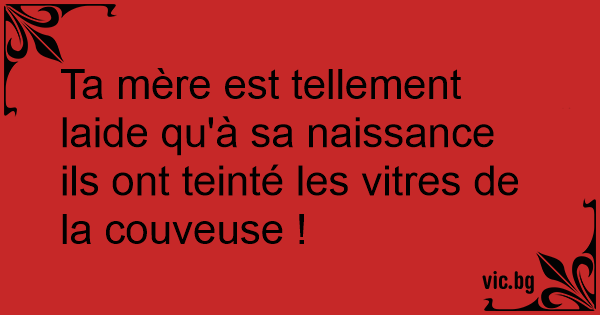 Ta mère est tellement laide qu'à sa naissance ils ont teinté les vitres de la couveuse !