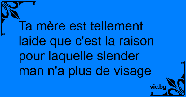 Ta mère est tellement laide que c'est la raison pour laquelle slender man n'a plus de visage