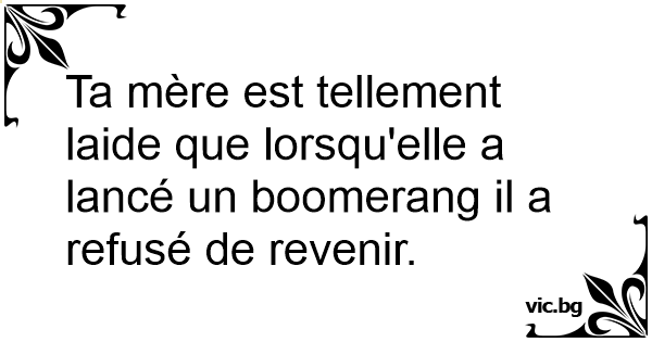 Ta mère est tellement laide que lorsqu'elle a lancé un boomerang il a refusé de revenir.