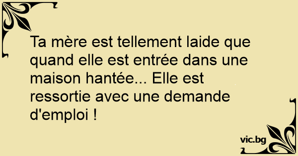 Ta mère est tellement laide que quand elle est entrée dans une maison hantée... Elle est ressortie avec une demande d'emploi !