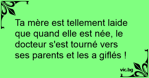 Ta mère est tellement laide que quand elle est née, le docteur s'est tourné vers ses parents et les a giflés !