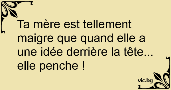Ta mère est tellement maigre que quand elle a une idée derrière la tête... elle penche !