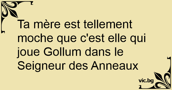 Ta mère est tellement moche que c'est elle qui joue Gollum dans le Seigneur des Anneaux