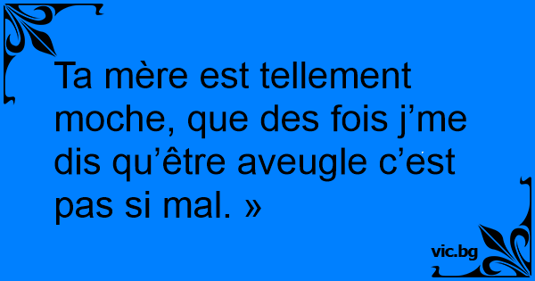 Ta mère est tellement moche, que des fois j’me dis qu’être aveugle c’est pas si mal. »