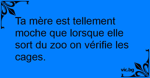 Ta mère est tellement moche que lorsque elle sort du zoo on vérifie les cages.