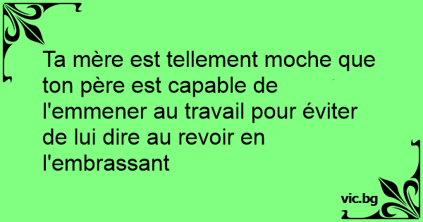 Ta mère est tellement moche que ton père est capable de l'emmener au travail pour éviter de lui dire au revoir en l'embrassant