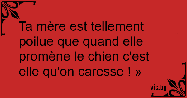 Ta mère est tellement poilue que quand elle promène le chien c'est elle qu'on caresse ! »