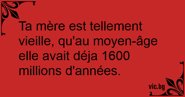 Ta mère est tellement vieille, qu'au moyen-âge elle avait déja 1600 millions d'années.