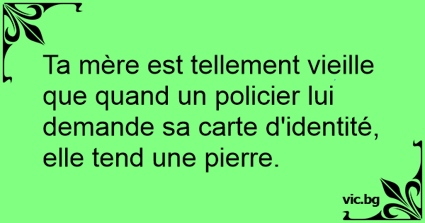 Ta mère est tellement vieille que quand un policier lui demande sa carte d'identité, elle tend une pierre.