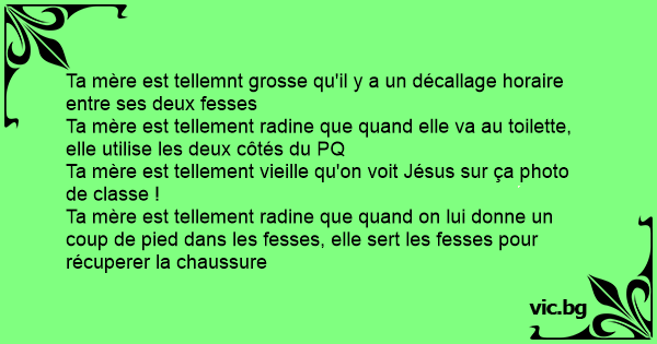 Ta mère est tellemnt grosse qu'il y a un décallage horaire entre ses deux fesses