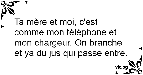 Ta mère et moi, c'est comme mon téléphone et mon chargeur. On branche et ya du jus qui passe entre.