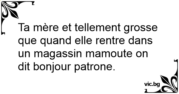 Ta mère et tellement grosse que quand elle rentre dans un magassin mamoute on dit bonjour patrone.