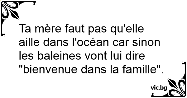 Ta mère faut pas qu'elle aille dans l'océan car sinon les baleines vont lui dire "bienvenue dans la famille".