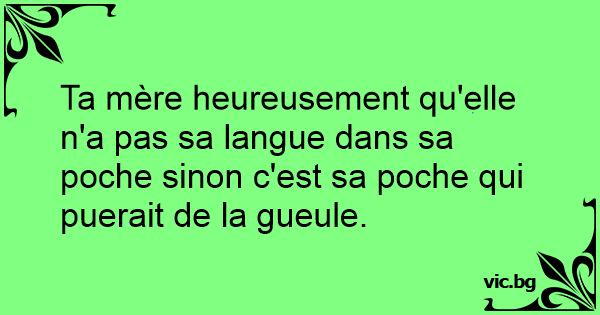 Ta mère heureusement qu'elle n'a pas sa langue dans sa poche sinon c'est sa poche qui puerait de la gueule.