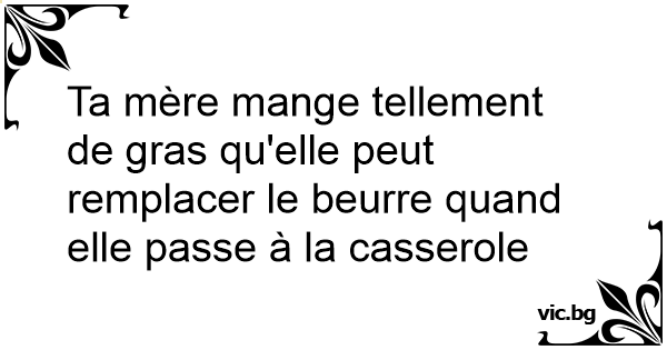 Ta mère mange tellement de gras qu'elle peut remplacer le beurre quand elle passe à la casserole