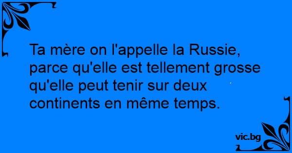 Ta mère on l'appelle la Russie, parce qu'elle est tellement grosse qu'elle peut tenir sur deux continents en même temps.