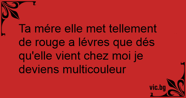 Ta mére elle met tellement de rouge a lévres que dés qu'elle vient chez moi je deviens multicouleur