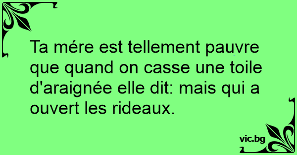 Ta mére est tellement pauvre que quand on casse une toile d'araignée elle dit: mais qui a ouvert les rideaux.