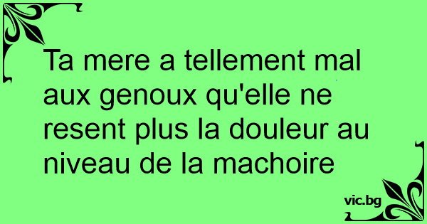 Ta mere a tellement mal aux genoux qu'elle ne resent plus la douleur au niveau de la machoire