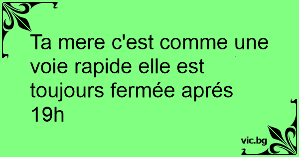 Ta mere c'est comme une voie rapide elle est toujours fermée aprés 19h