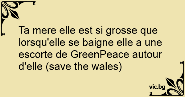 Ta mere elle est si grosse que lorsqu'elle se baigne elle a une escorte de GreenPeace autour d'elle (save the wales)