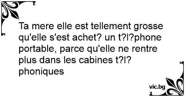 Ta mere elle est tellement grosse qu'elle s'est achet? un t?l?phone portable, parce qu'elle ne rentre plus dans les cabines t?l?phoniques
