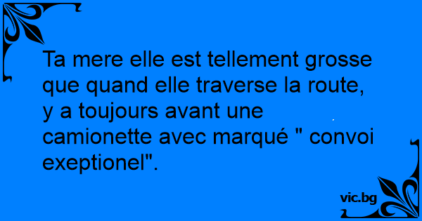 Ta mere elle est tellement grosse que quand elle traverse la route, y a toujours avant une camionette avec marqué " convoi exeptionel".