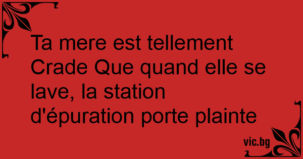 Ta mere est tellement Crade Que quand elle se lave, la station d'épuration porte plainte