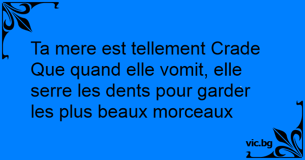 Ta mere est tellement Crade Que quand elle vомiт, elle serre les dents pour garder les plus beaux morceaux