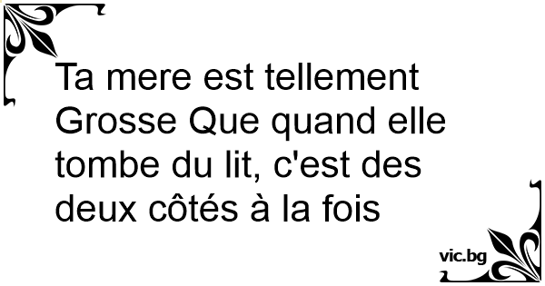 Ta mere est tellement Grosse Que quand elle tombe du lit, c'est des deux côtés à la fois