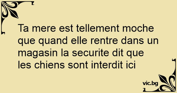 Ta mere est tellement moche que quand elle rentre dans un magasin la securite dit que les chiens sont interdit ici