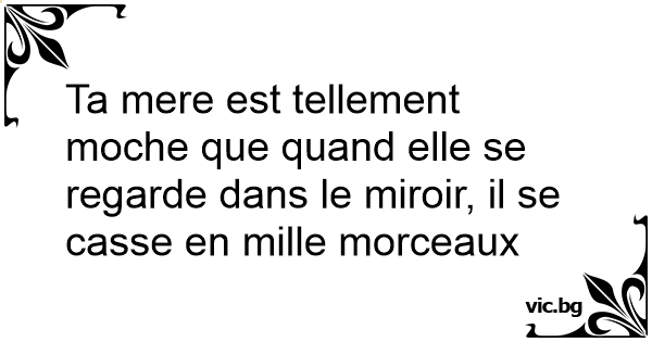 Ta mere est tellement moche que quand elle se regarde dans le miroir, il se casse en mille morceaux
