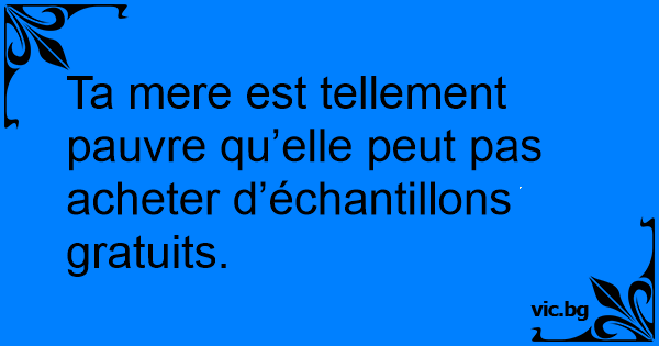 Ta mere est tellement pauvre qu’elle peut pas acheter d’échantillons gratuits.