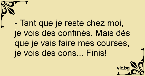 - Tant que je reste chez moi, je vois des confinés. Mais dès que je vais faire mes courses, je vois des cons... Finis!