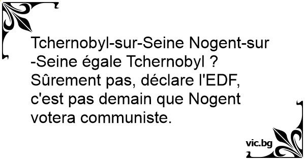 Tchernobyl-sur-Seine Nogent-sur-Seine égale Tchernobyl ? Sûrement pas, déclare l'EDF, c'est pas demain que Nogent votera communiste.