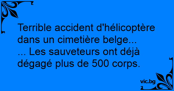 Kirkegården En blondine siger til en anden “Vidste du godt der var en helikopter der styrtede ned i kirkegården i går? Der er fundet mange døde og tallet er stigende”.