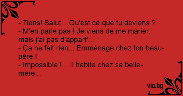 - Impossible !... Il habite chez sa belle-mère...