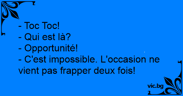 - C'est impossible. L'occasion ne vient pas frapper deux fois!