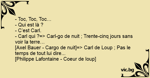 - Carl qui ?=> Carl-go de nuit ; Trente-cinq jours sans voir la terre…